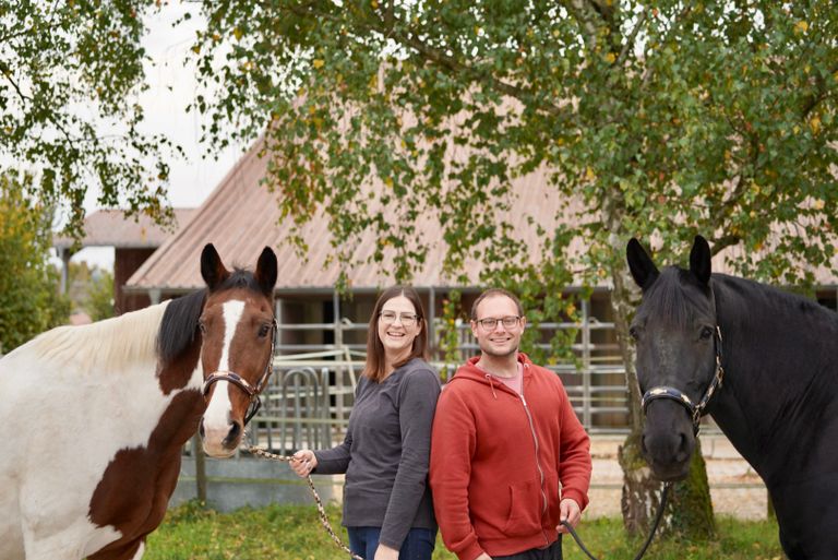 Unser Zuhause teilen wir mit zwei treuen Hunden (Mex & Benni), die uns auf Schritt und Tritt begleiten, außerdem gehören 2 Pferde (Stuart & Atreju) zu unserer Familie.